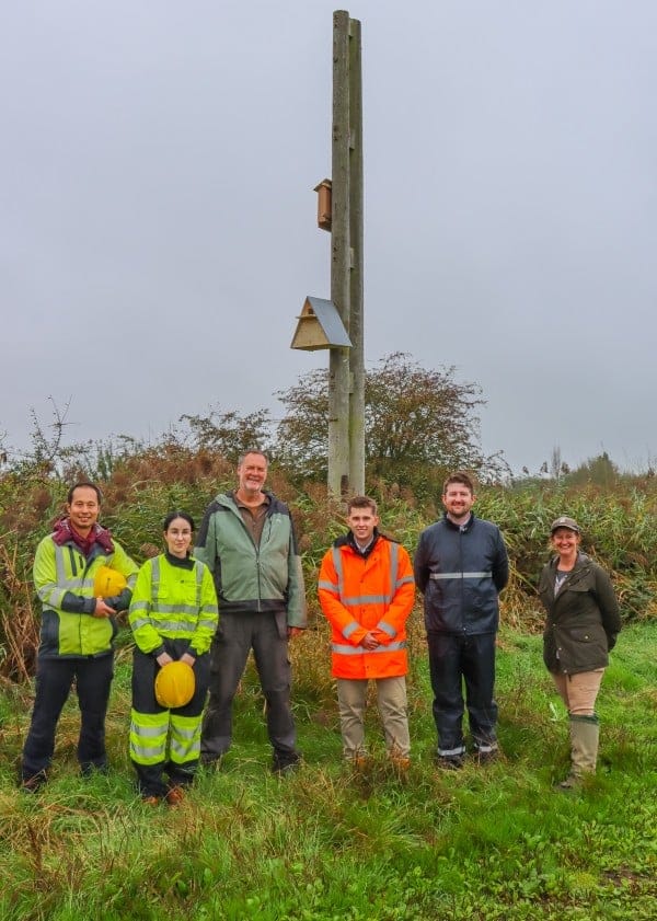 These boxes will provide a habitat for local swift and barn owl populations, providing safer sites for roosting. The SSE team, along with contract partners OCU and Dalcour Maclaren, worked with a group from Arun District Council to repurpose the old poles for this new role.